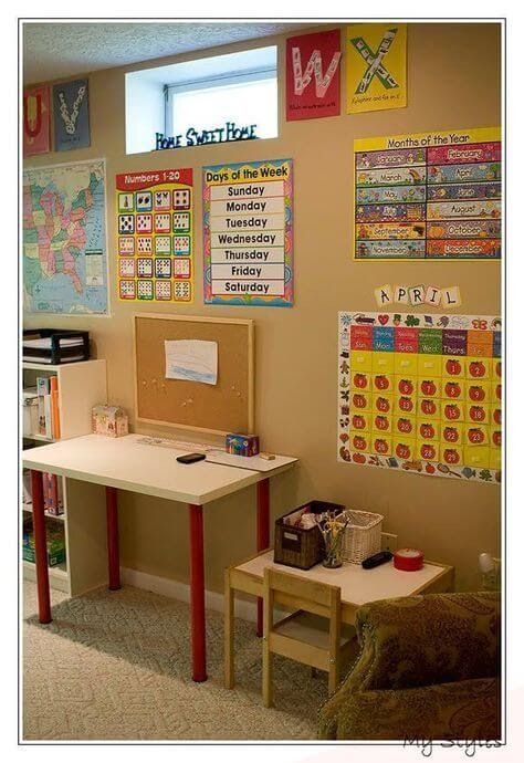 A busy space can quickly become a distraction and lead to poor performance. Keep it simple when decorating your home classroom and fill the space with only the essentials.