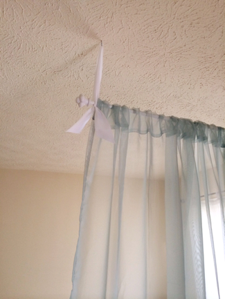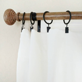 - Lay your curtain rod across the hooks, thread your curtains, and you’re all set!