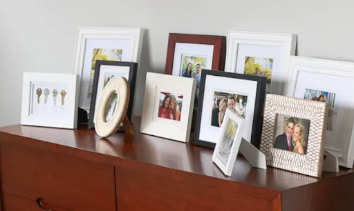 Framed photographs of loved ones, favorite vacation spots, works of art, or inspirational quotes fill gaps on dressers, coffee tables and window sills. Short on wall space? Framed art can be propped on easels or leaned against walls to prevent holes that you may have to patch later.