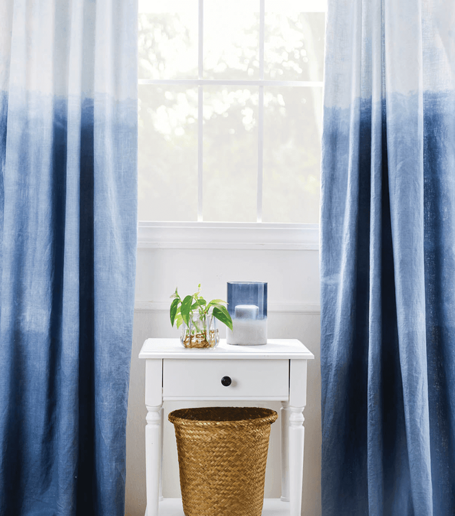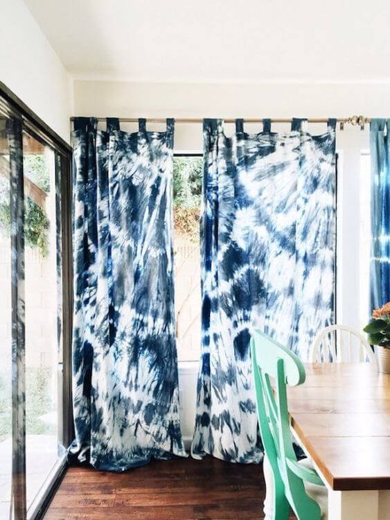 Apply Shibori dyeing to white or neutral curtains for a bold splash of color!