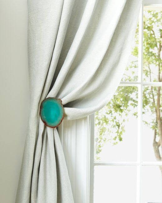 Choose from rope tiebacks, jeweled holdbacks or metal hardware to update your window’s look. For more ideas, check out 8 Different Ways to Tie Back Curtains.