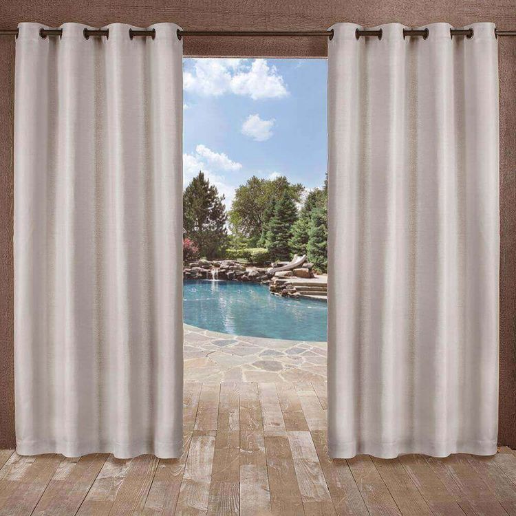If your patio door is near a swimming pool or other water source, choosing indoor/outdoor curtains may be wise. Indoor/outdoor curtains are water repellent, mildew resistant and offer UV protection.