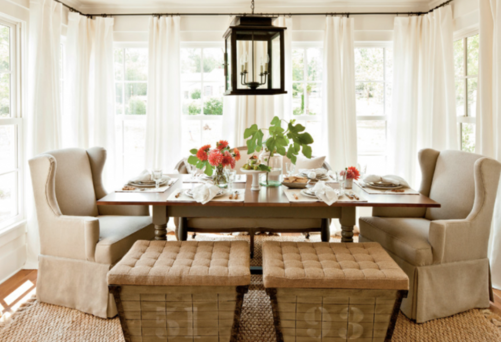 Café curtains are shaking off their country kitchen reputation and moving into dining rooms. Hung halfway up windows, they provide privacy while letting light pour in from above. Pair crisp white broderie anglaise with industrial metal rods, or layer sheer lace panels under heavier drapes for depth.