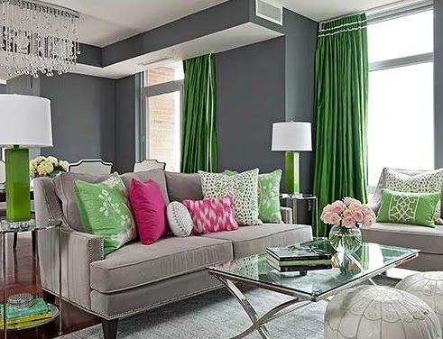 A complementary color scheme incorporates colors that are opposite each other on the color wheel. Green and pink (shown below), orange and blue and yellow and purple are examples of complementary color pairings.